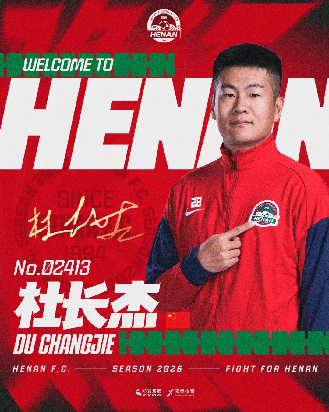 欢迎杜长杰重回河南足球俱乐部,期待你与全体将士并肩作战,为河南足球拼下更多荣耀!