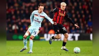 伯恩茅斯出场阵容:1-佩特洛维奇、20-希门尼斯、23-詹姆斯·希尔、5-塞内西、3-特吕费尔、12-泰勒·亚当斯、8-斯科特、37-拉扬(74’21-阿德利)、10-克里斯蒂(74’22-克鲁皮)、16-塔韦尼耶、9-埃瓦尼尔森(80’26-于纳尔)