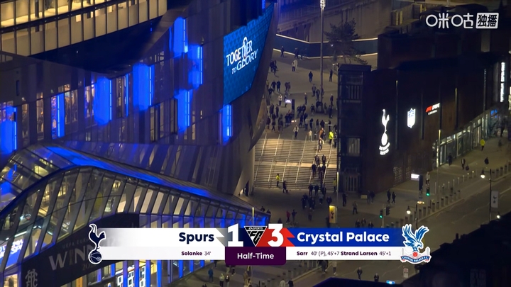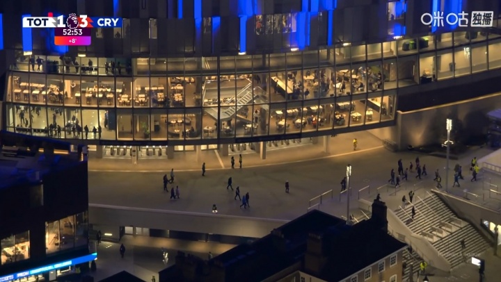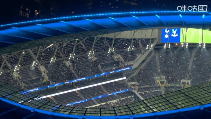 下半场开始前,转播镜头的俯视角拍摄热刺球场坐席↓