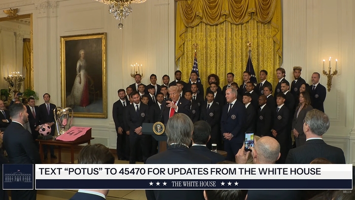 特朗普:“我见过很多来自不同国家、不同类型的优秀运动员进入体育界。有些球员可能来自不同的州——比如洋基队或道奇队——但我见过来自其他国家的运动员,但他们都没能成功。而这个人成功了。他受到了极大的关注,而且他成功了。里奥(梅西),你参加并赢得了比赛,这非常难得,非常罕见。你承受的压力远超我们的想象,因为大家都期望你赢。他们参赛就能拿到巨额奖金,而你却在如此巨大的压力下赢得了比赛。这真是令人敬佩。所以,祝贺你!那一刻,你们为迈阿密队赢得了一场真正具有历史意义的胜利——这是北美第一支击败所谓欧洲俱乐部的球队,这是一件非常了不起的事情。带着惊人的势头重返美国职业足球大联盟——创下美国职业足球大联盟历史最高积分纪录,是这样吗?”