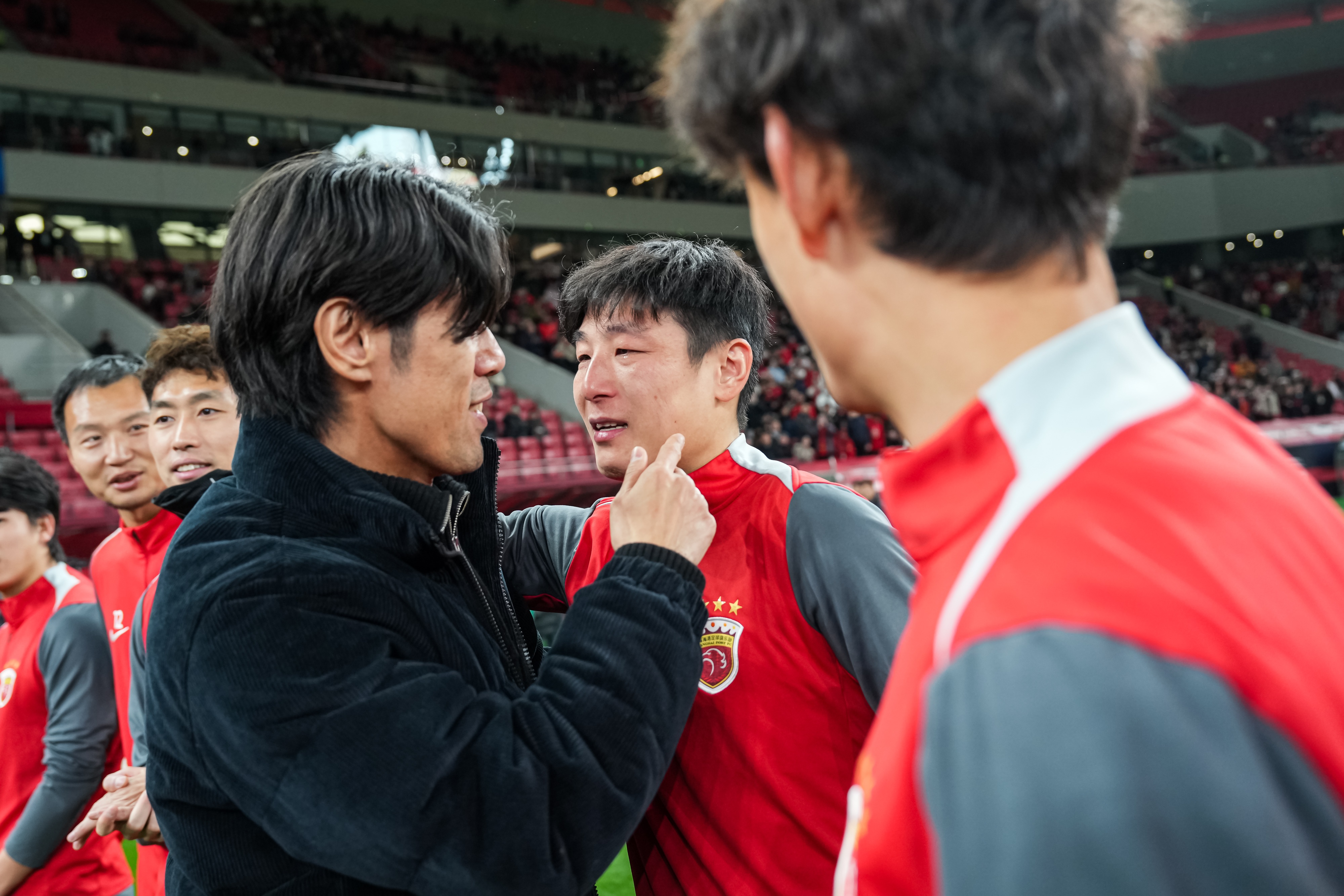 >海港赛前举行吕文君、蔡慧康退役仪式,武磊落泪
