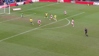 第40分钟,阿森纳首开记录!马杜埃凯右路弧顶内切低射被扑出,随后马丁内利左路倒三角给到马杜埃凯兜射破门,曼斯菲尔德0-1阿森纳。↓