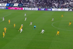 第90+3分钟,尤文打反击,洛卡特利送出直塞,博加前插到禁区左侧得球后,晃开门将小角度低射破门,4-0!↓