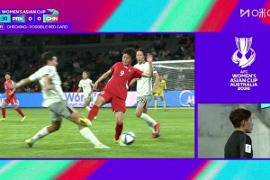 上半场补时第4分钟,姚伟开出定位球,远端的张程雪传中,王霜包抄破门,边裁举旗示意越位,随后经过VAR检查,主裁判示意进球有效,中国女足2-1反超朝鲜女足。↓