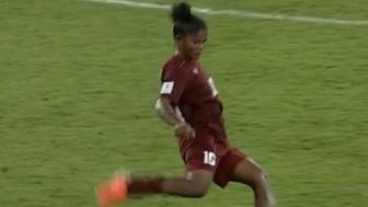 第39分钟,印度女足前场任意球机会,玛尼莎·卡利扬打出一脚高质量射门,皮球击中横梁下沿弹地后弹回场内。随后,经过VAR检查,皮球弹地时已经完全越过门线,印度女足1-1扳平比分。↓