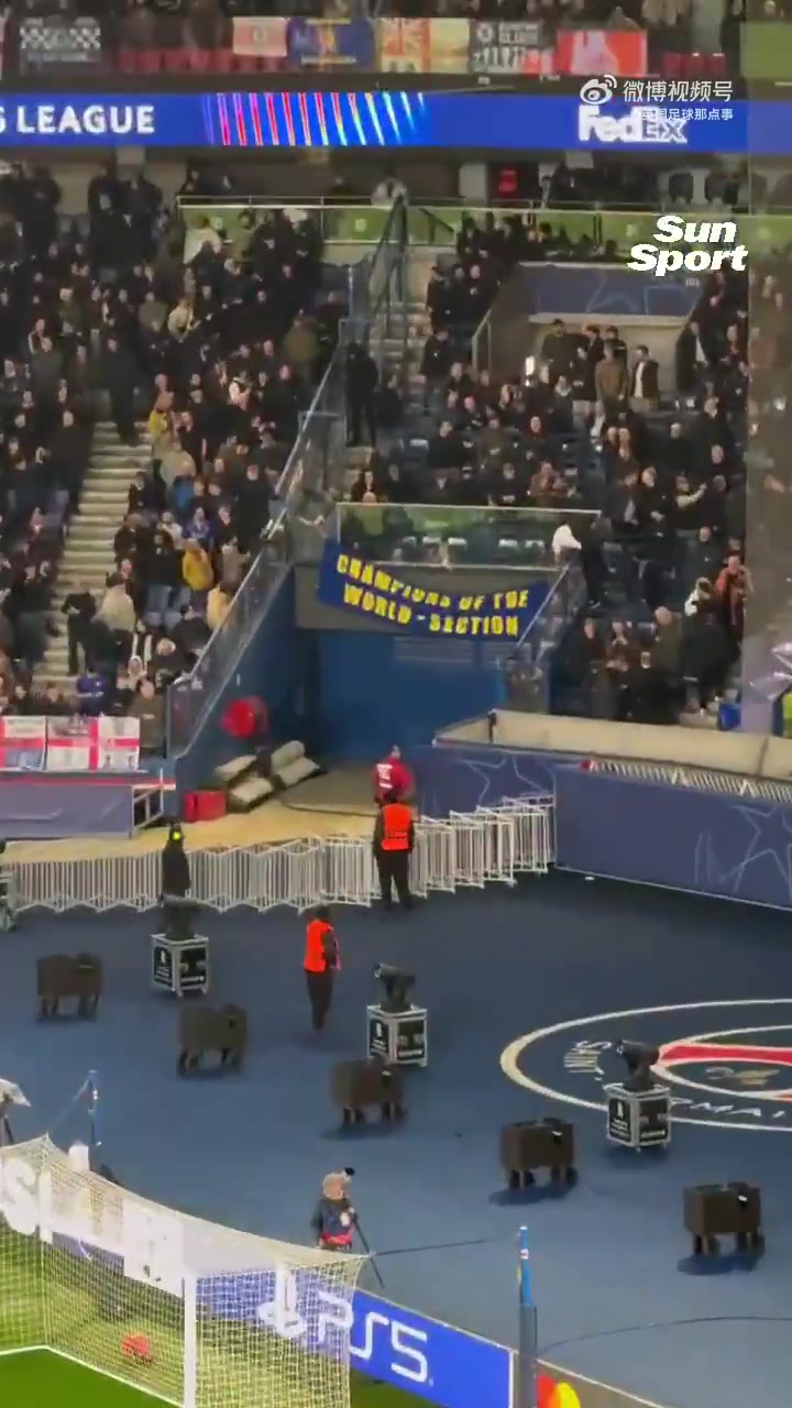 整活😂切尔西球迷在巴黎主场拉起的横幅:世界冠军专区🔥
