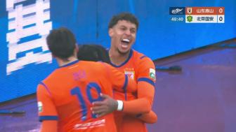 泰山领先!谢文能破门,克雷桑助攻!第49分钟,国安后防漏人,克雷桑直塞到右路空当,谢文能小角度劲射上角得手,山东泰山1-0北京国安!↓