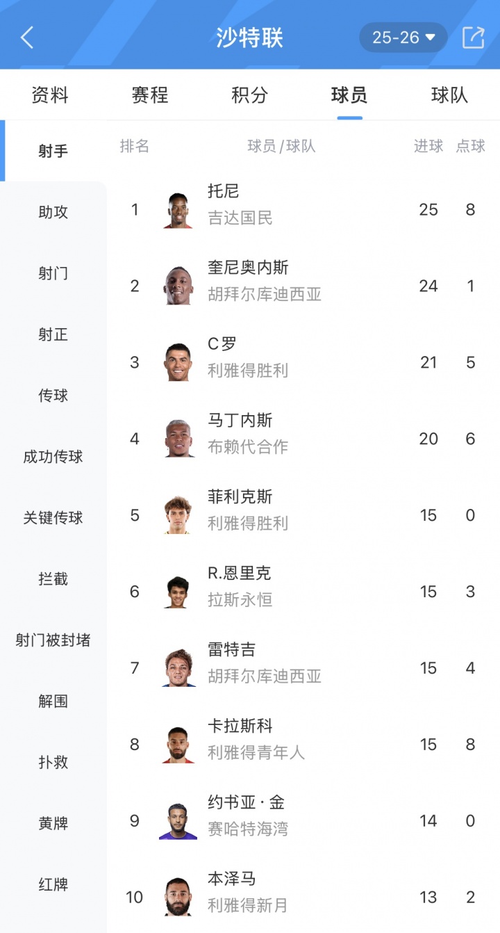 本场比赛菲利克斯2射1传,目前在沙特联射手榜排在第5,助攻榜12记助攻排在第一。