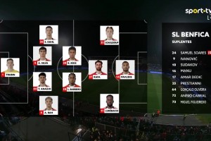 本菲卡首发阵容:1-特鲁宾、6-亚历山大·巴(73' 17-德蒂奇)、26-达尔、44-阿劳霍、4-安东尼奥·席尔瓦(73' 9-伊万诺维奇)、27-拉法·席尔瓦(74' 10-苏达科夫)、11-卢克巴基奥(74' 25-普雷斯蒂安尼)、18-巴列罗、20-里奥斯、21-谢尔德鲁普(86' 72-阿尼西奥)、14-帕夫利季斯