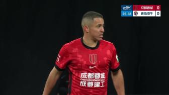 第6分钟,成都蓉城左路任意球,皮球传到前点,韦世豪头球攻门,皮球稍稍高出横梁↓