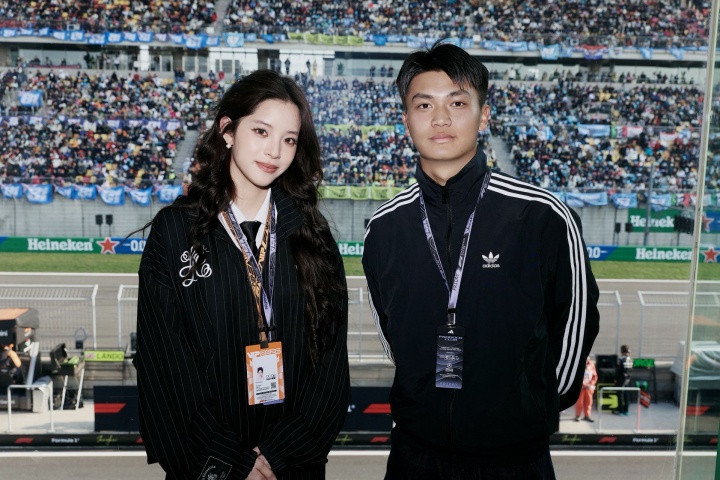 >蒯纪闻现场观战F1,与欧阳娜娜合照