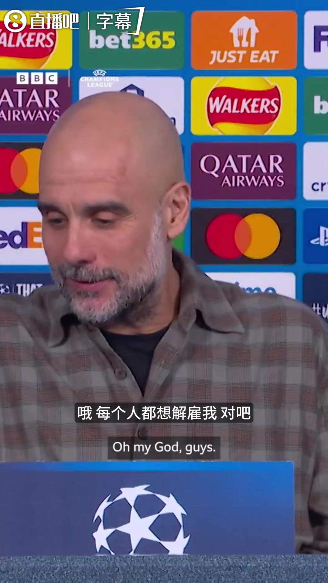 话音未落,瓜迪奥拉仰天长叹:“每个人都想解雇我,对吧?!天哪。总有一天,我来这里说,再见伙计们。但我现在还在这里,还有一年合同呢!”