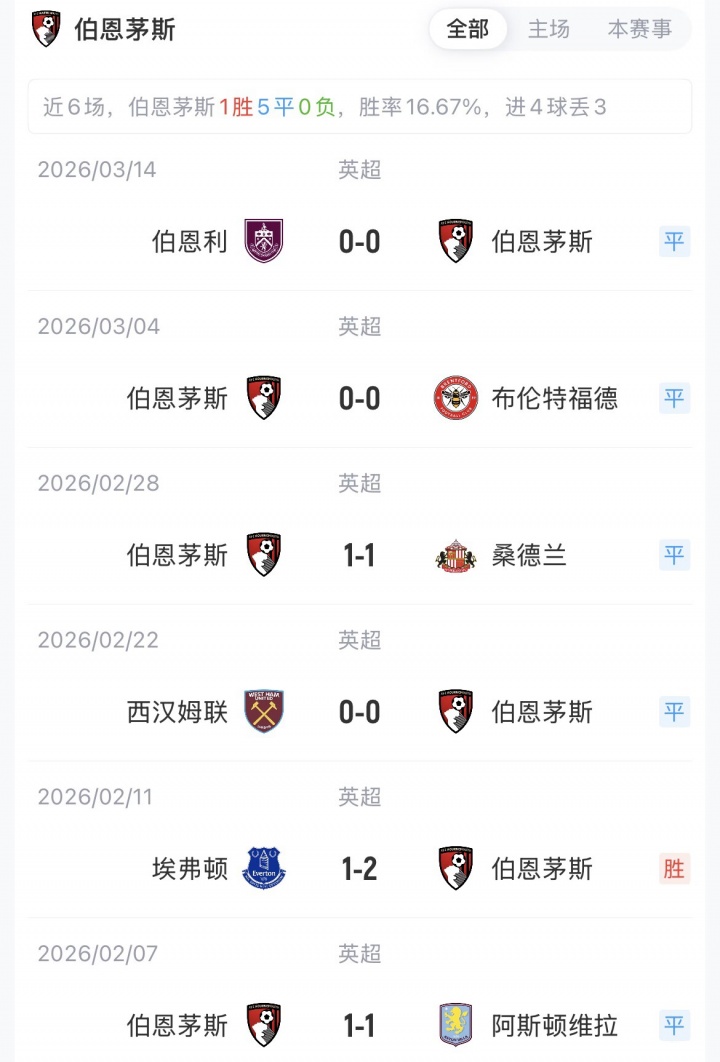 曼联暂以54分排名第三,伯恩茅斯41分排名第十。赛季首次交手,曼联主场4-4战平伯恩茅斯。