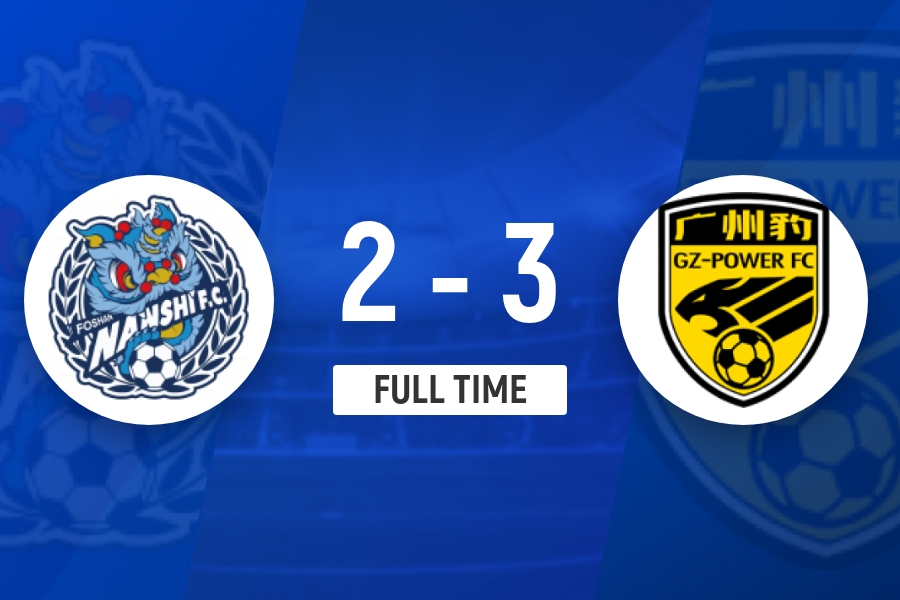 全场比赛结束,佛山南狮2-3广东广州豹。