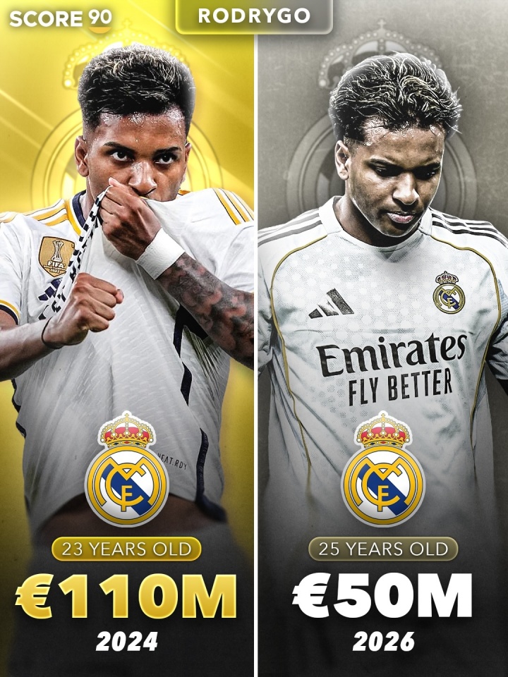 罗德里戈:23岁 1.1亿欧→25岁 5000万欧