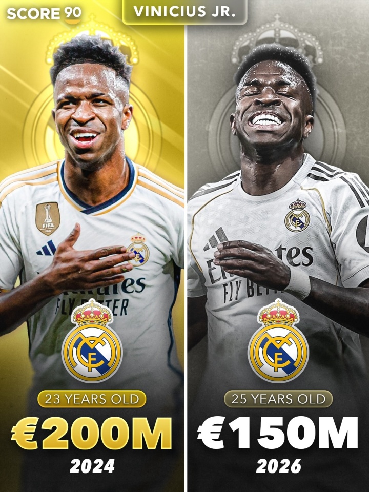 维尼修斯:23岁 2亿欧→25岁 1.5亿欧