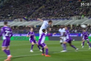第29分钟,佛罗伦萨前场连续的攻势,禁区右侧布雷西亚尼尼下底横扫门前,后点包抄的基恩错失空门↓