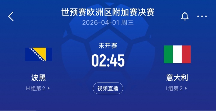 北京时间下周三凌晨2点45,意大利将对阵波黑,只有胜者才能晋级美加墨世界杯。