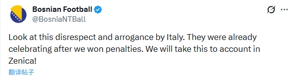 赛后球迷们转发这一视频,有波黑球迷表示:看看意大利这副傲慢无礼的样子。我们刚赢下点球,他们就开始庆祝了。我们会让他们付出代价!