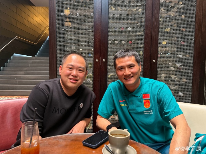 媒体人李平康晒出与国足主帅邵佳一的合照,并表示:“国家队在我们心中永远有特殊的分量!顺便要点赞一下新一届国足真的纪律很严明,本来想请邵导吃饭的,但这次他们都是训练比赛酒店三点一线,不能外出,于是就被邀请来酒店喝了个咖啡。 ”
