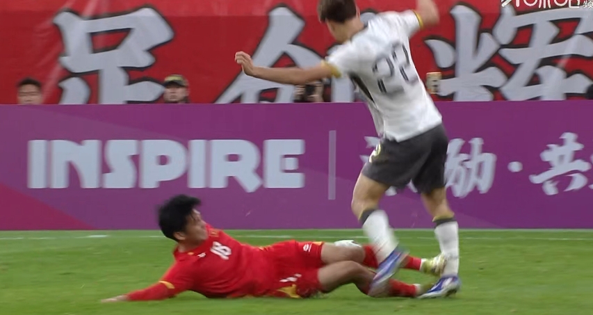 >越南U23球员亮鞋钉飞铲毛伟杰小腿,毛伟杰表情十分痛苦