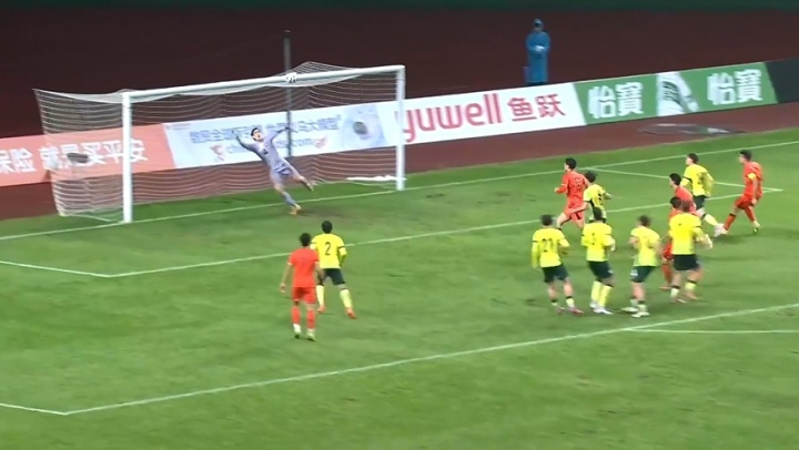 就差一点!第73分钟,苗润东任意球打门击中横梁