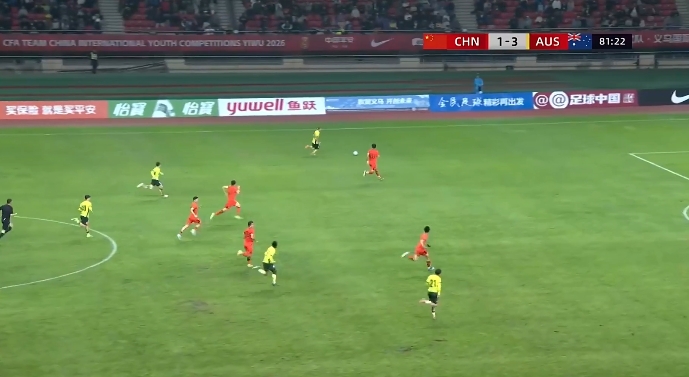 第82分钟,澳大利亚U19反击机会破门,U19国足1-4落后澳大利亚U19。