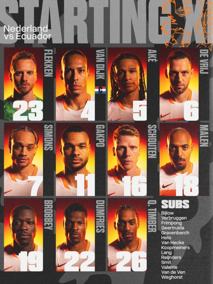 替补:拜洛、维尔布鲁根、弗林蓬、吉尔特鲁伊达、赫拉芬贝赫、哈托、范赫克、库普梅纳斯、诺阿·朗、赖因德斯、斯米特、瓦伦特、范德芬、韦霍斯特。