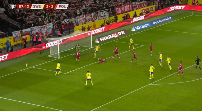 绝杀?约克雷斯88分钟破门,瑞典3-2领先波兰