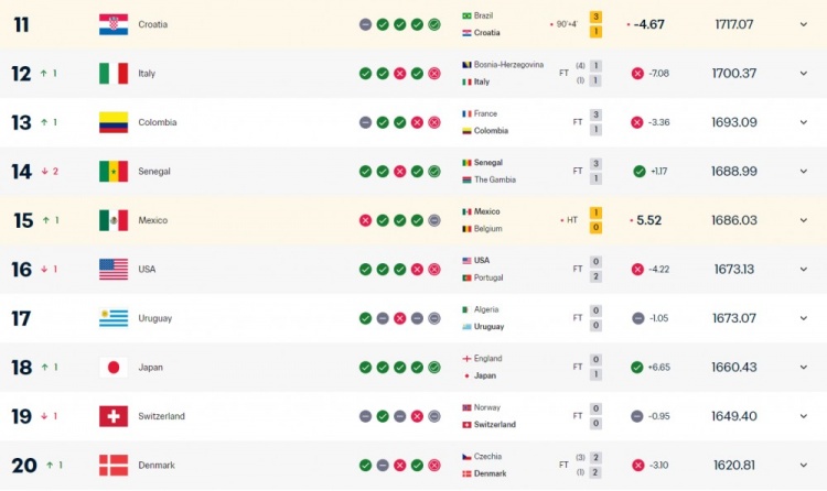 同时,日本队在本月的热身赛接连击败苏格兰和英格兰,FIFA积分上涨10.31分,最新世界排名上升至第18位。