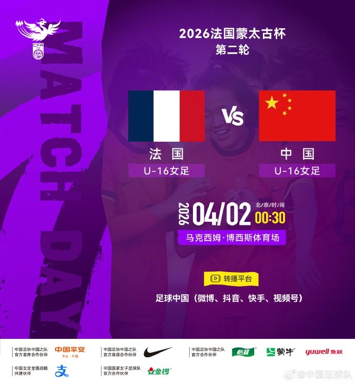 >蒙太古杯女足赛第二轮 ⚽ 法国U16女足VS中国U16女足 4月2日00:30