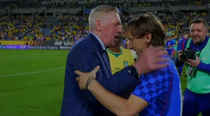 师徒再相见!巴西vs克罗地亚赛后,莫德里奇与安切洛蒂拥抱合影