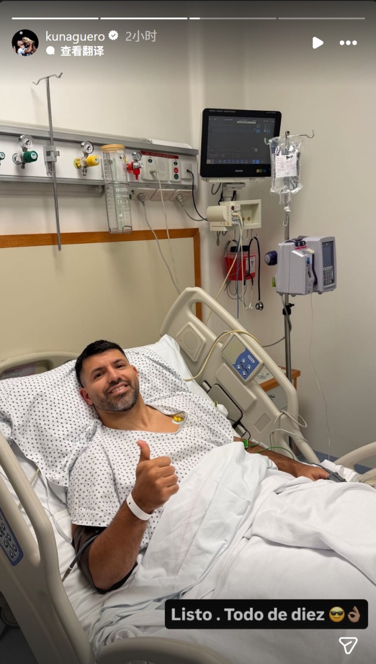 >阿圭罗社媒晒照确认手术成功:搞定了,一切都很顺利