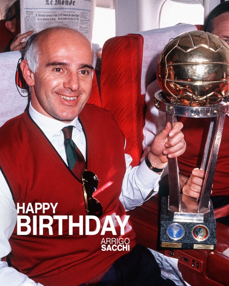 米兰官方社媒晒出萨基的生日海报,配文:“萨基今天80岁了,永远走在时代前沿,祝这位真正的革新者生日快乐!”
