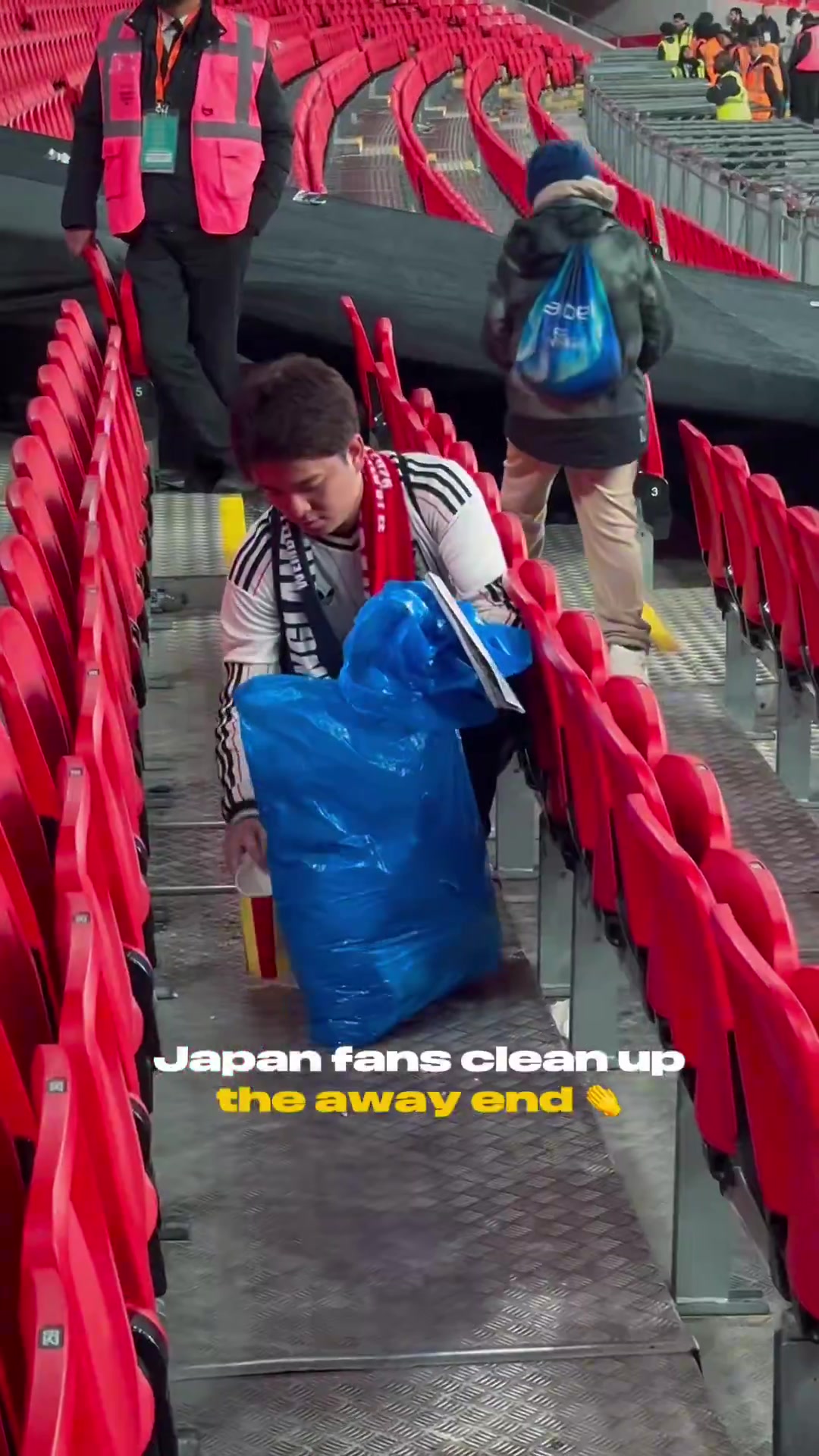 赛后温布利球场官方晒出视频,致谢日本球迷清理球场的垃圾。