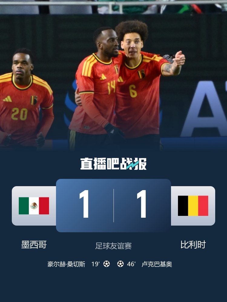 最终,墨西哥1-1比利时。