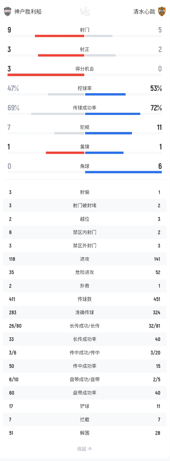 直播吧04月01日讯 北京时间4月1日18:00,J联赛东区第11轮神户胜利船迎战清水心跳的比赛在神户御崎公园球技场进行,上半场神户胜利船1-0领先,半场1-0结束。下半场扇原贵宏点射破门,最终神户胜利船2-0取胜。