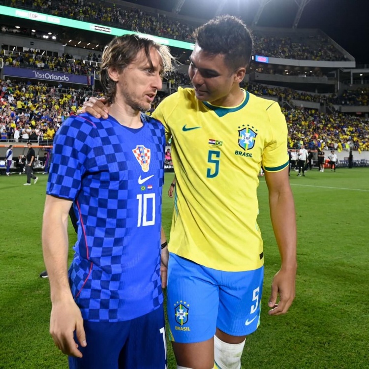 莫德里奇社媒晒出与安切洛蒂、维尼修斯、恩德里克、卡塞米罗的合照,配文:“与克罗地亚队一起在美国度过了很棒的几天,很高兴见到几位老朋友,期待很快再次相见!”