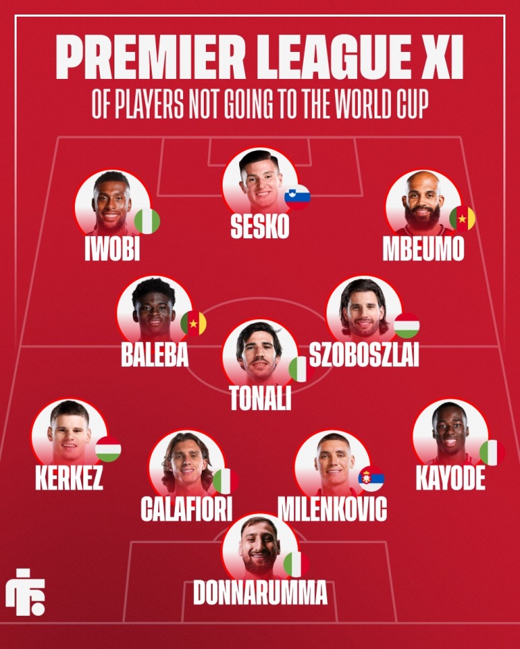 直播吧4月2日讯 随着世界杯参赛48队全部确定,一些知名球星只能以观众身份观战。英国媒体Football Insider评出了无缘世界杯英超11人,索博、托纳利、舍什科、姆伯莫在列。