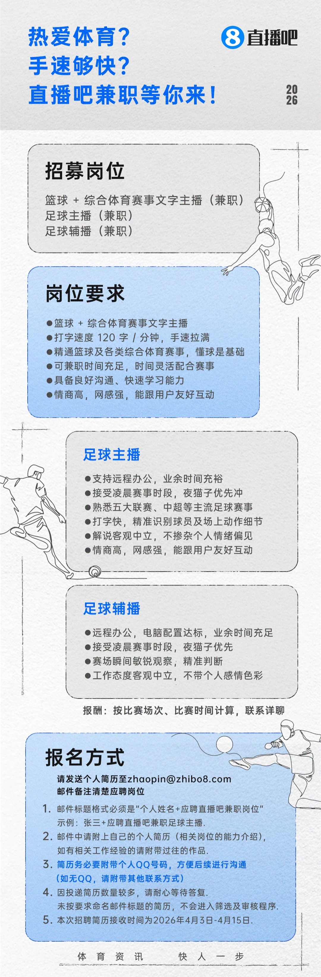 篮球 + 综合体育赛事文字主播(兼职)
