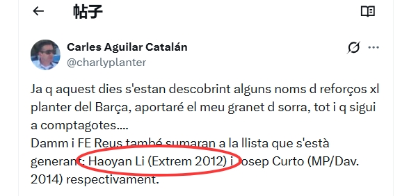 拉玛西亚博主“lamasia.news”更近一步表示,李昊炎下赛季将加入巴萨U15梯队(Cadet B)。