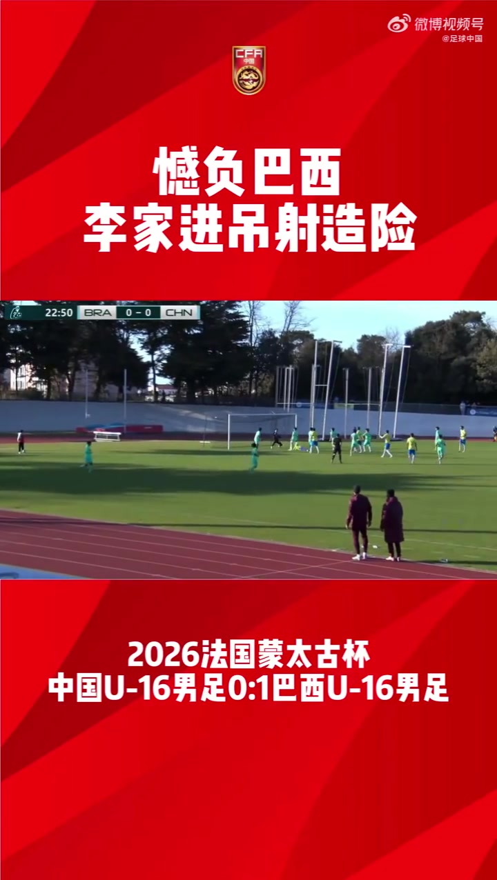 >憾负巴西!中国U-16男足0比1巴西U-16男足