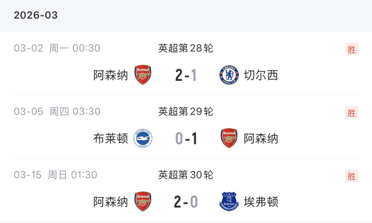 阿森纳3月战绩
