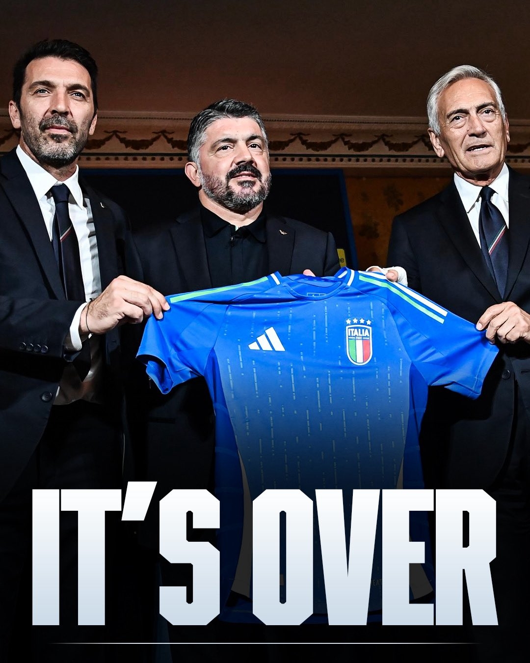 4月1日凌晨结束的世界杯欧洲区附加赛决赛,意大利点球大战负于波黑,连续三届无缘世界杯。4月2日,意大利足协主席格拉维纳、国家队领队布冯先后宣布辞职,4月3日意大利国家队主帅加图索也官宣离任。