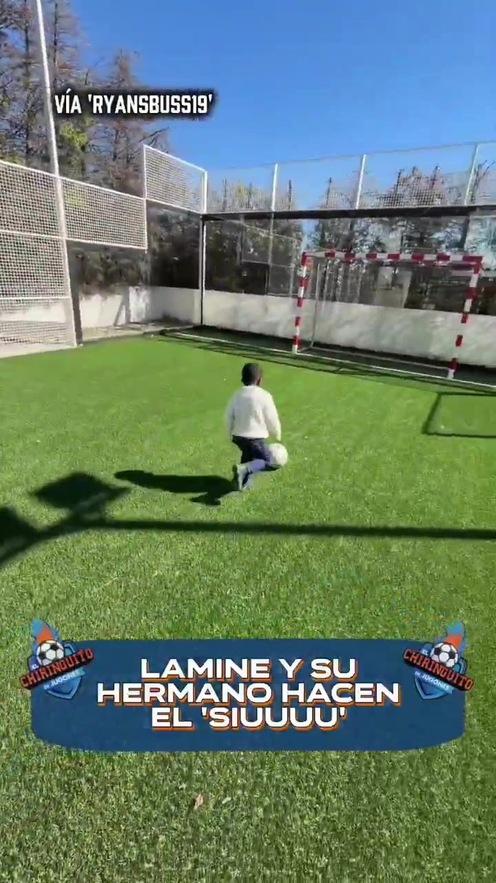 视频中,亚马尔的弟弟带球破门,随后亚马尔上前与弟弟互动,教他C罗的标志性的“SIU”庆祝动作。