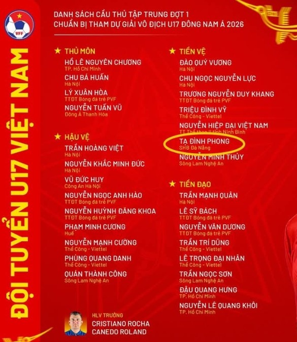直播吧4月3日讯 据博主“越南足球资深研究_东南亚体育”消息,一位名叫谢霆锋的球员入选越南U17队名单。