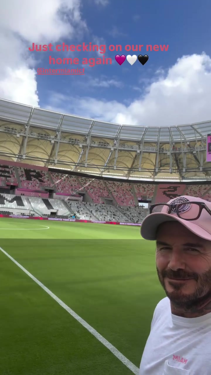贝克汉姆社媒晒出自己身处新球场的视频,配文:“只是再来看看我们的新家。”