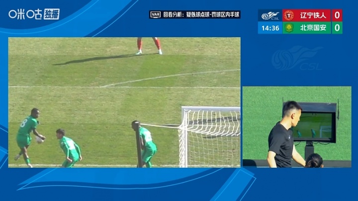 >铁人1-0领先国安!孔特手球裁判回看VAR后判点,姆本扎连场破门