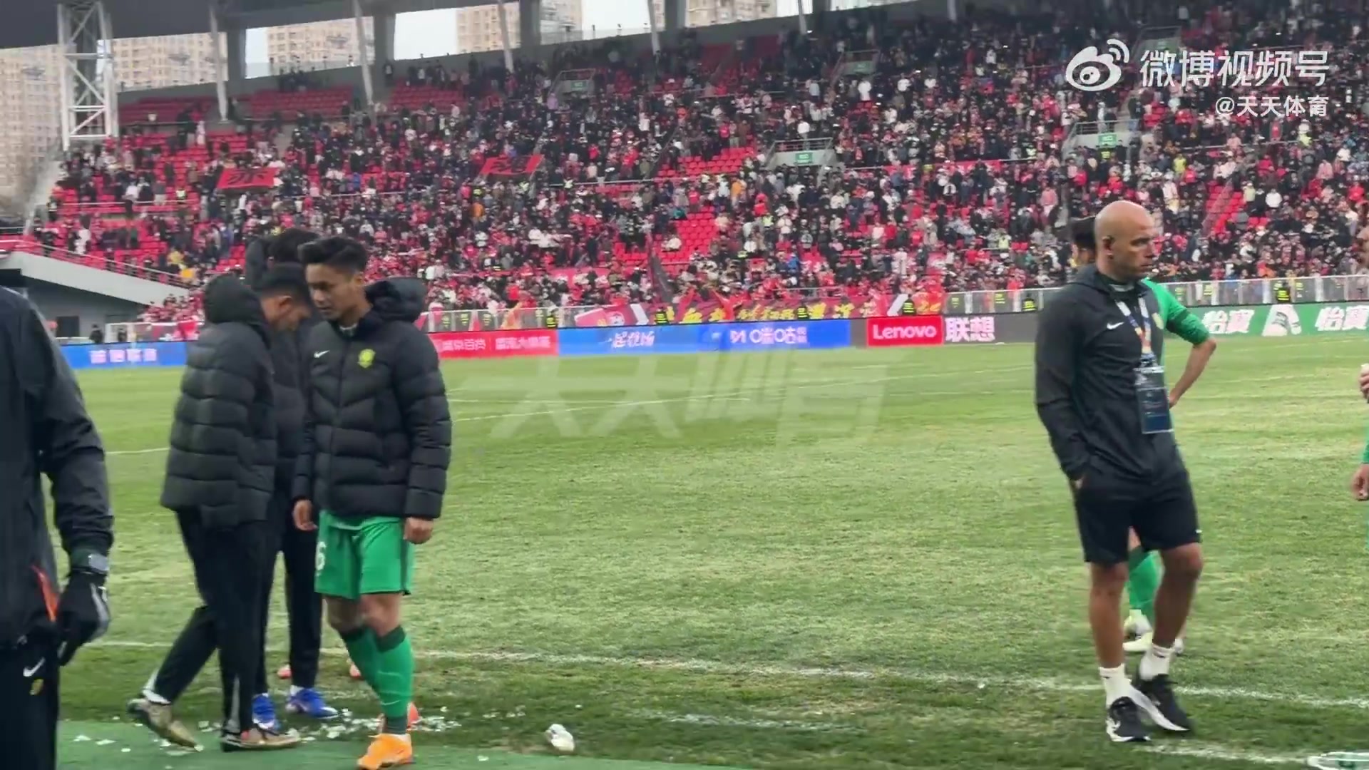 直播吧04月04日讯 今日下午中超第4轮,国安1-2不敌铁人,遭遇三轮不胜。据天天体育发布的现场视频,赛后国安众将神情失落,门将张健智落泪,非常沮丧(视频第4分钟),国安远征军给予了球队鼓励。