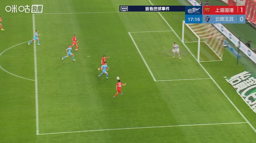 比赛第14分钟,杨希右路传中,门前刘祝润一蹭,莱昂纳多后点破门。随后VAR介入检查是否越位,直到比赛20分钟仍未做出决定。